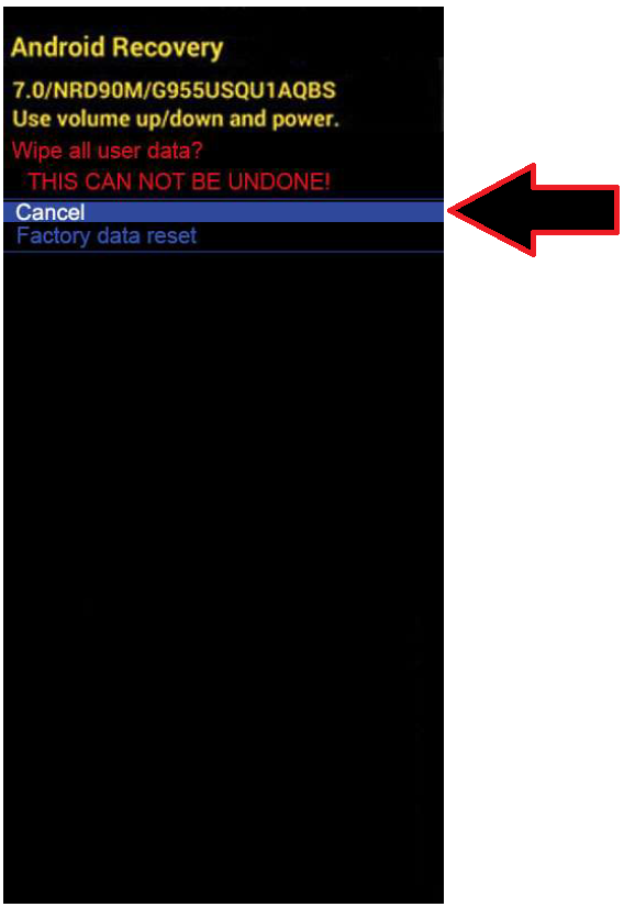 5 – Nessa tela, utilize as teclas de volume “+” e “-“, para navegar no menu até chegar na opção WIPE DATA/FACTORY